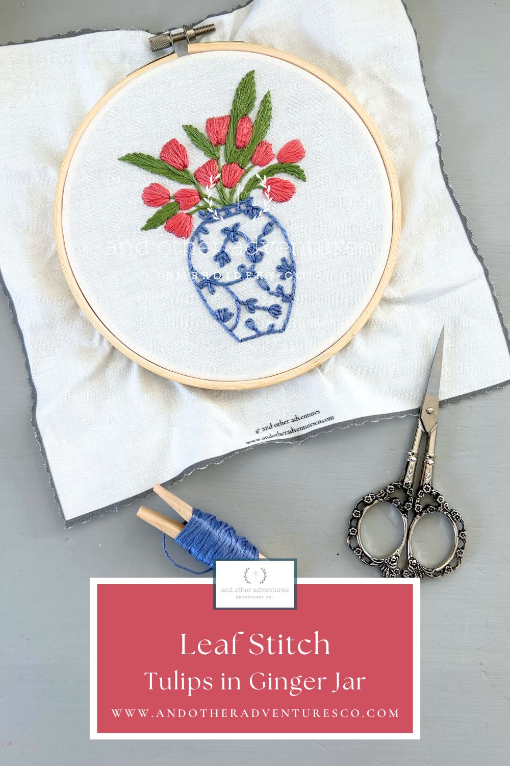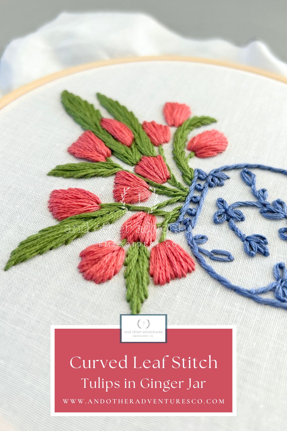 Pink Princess Tulips in Ginger Jar: Leaf Stitch
