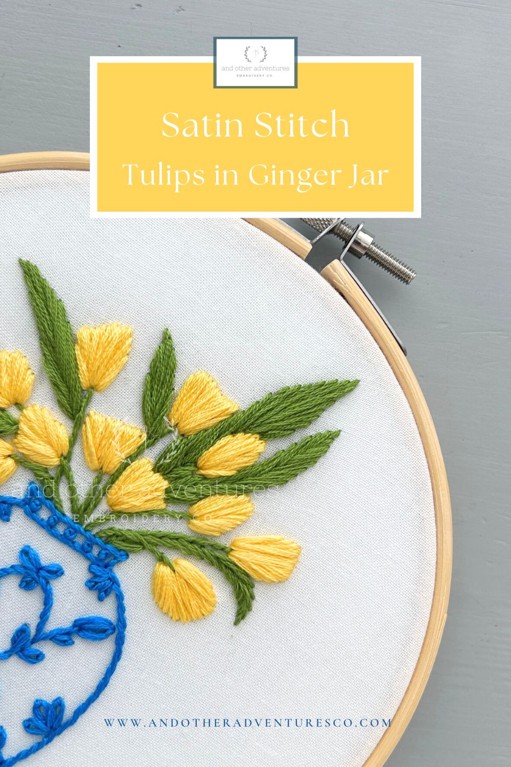 Yellow Tulips in Ginger Jar: Satin Stitch (aka Done is better than Perfection)