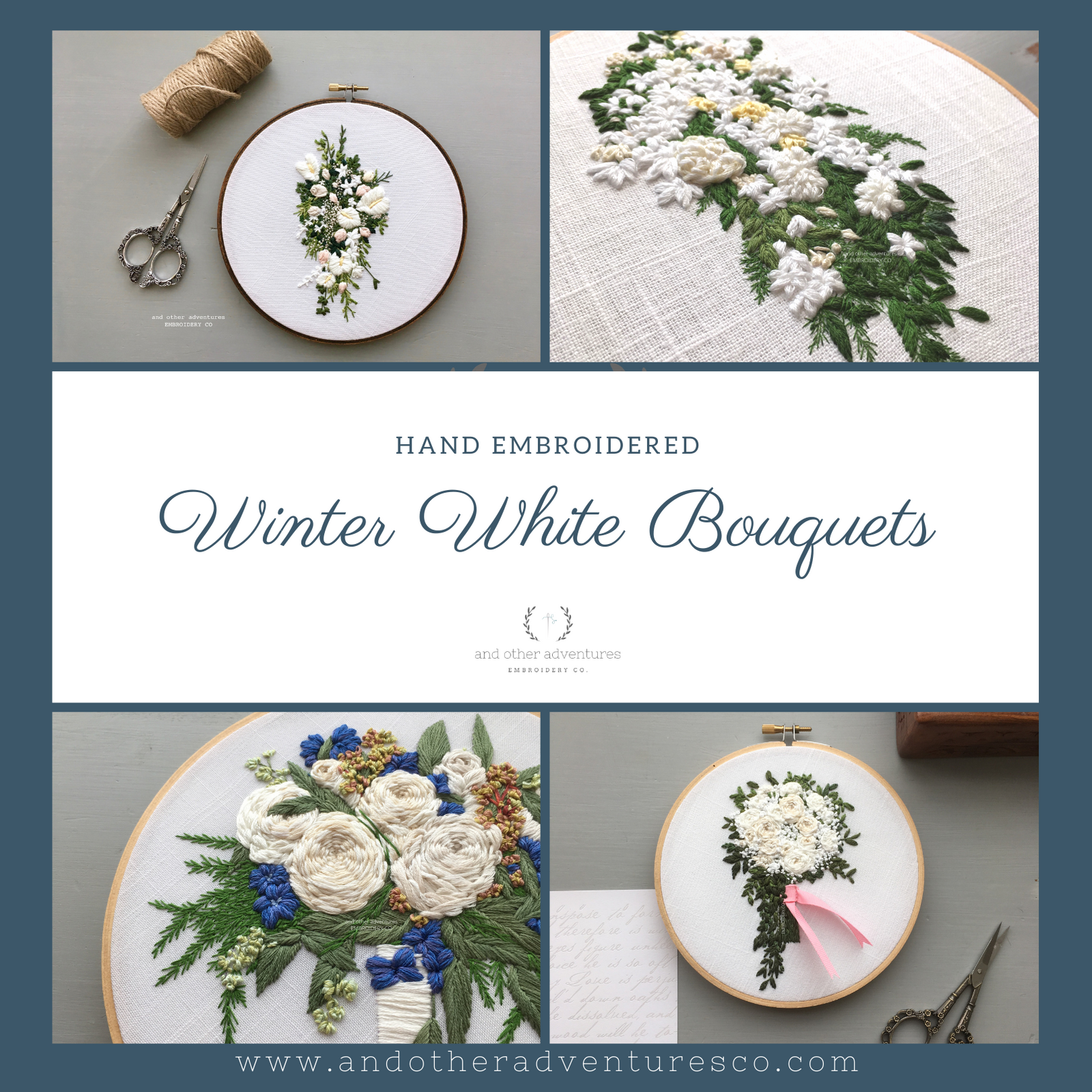 Hand Embroidered Winter White Wedding Bouquets