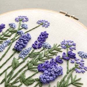 Calling all purple lovers! Stitch up a bright purple meadow with this beginner friendly hand embroidery PDF pattern.