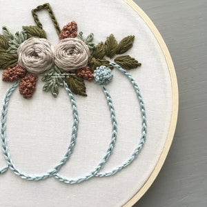 One of my most favorite fall traditions is decorating pumpkins. This year I decided to give my own spin to this well loved family tradition by creating this beginner embroidery pattern. My hope for you is that this weekend craft project puts you in a fall state of mind no matter what the temperature is outside.