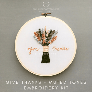 Embrace the season of gratitude with this Give Thanks Embroidery Kit. This weekend project is the perfect way to unwind and keep your hands busy while allowing your mind to focus on the spirit of the season. This FULL EMBROIDERY KIT is perfect for the beginner embroidery enthusiast.