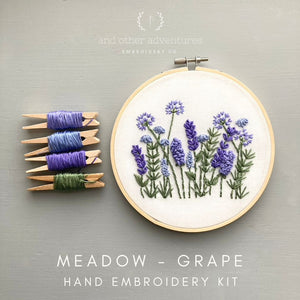 Calling all purple lovers! Stitch up a bright purple meadow with this beginner friendly hand embroidery kit.