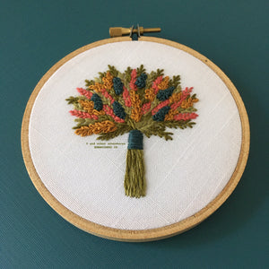 The McKenna Bouquet is the a perfect fall wildflower bouquet. Available as a FULL KIT, this is a fun weekend project for an embroidery beginner or enthusiast.
