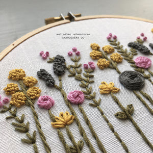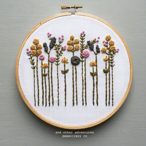 This listing is for a complete "Wildflowers" hand embroidery kit that includes the following: