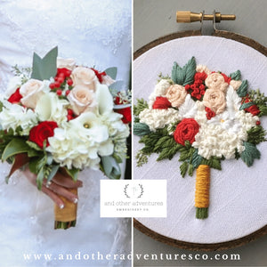 NOTE: Current processing time is 12 weeks from receiving your order and bouquet photos. If you need your embroidered bouquet by a specific date, please reach out prior to purchase to ensure that we can coordinate timelines.
