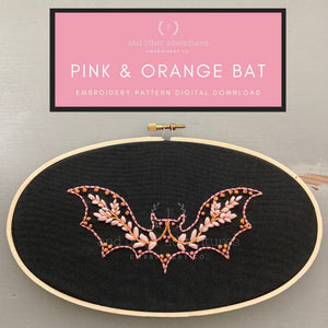 My Pink & Orange Bat embroidery PDF pattern is the perfect mix of spooky and sweet. A great weekend project that is great for beginners.