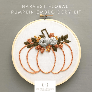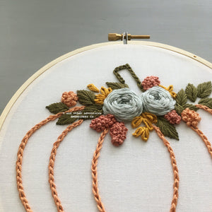 One of my most favorite fall traditions is decorating pumpkins. This year I decided to give my own spin to this well loved family tradition by creating this beginner embroidery pattern. My hope for you is that this weekend craft project puts you in a fall state of mind no matter what the temperature is outside.