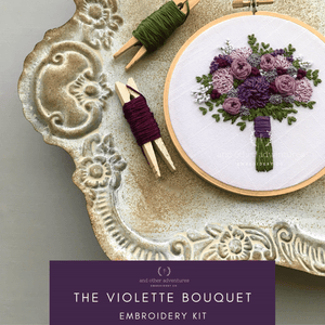 For quite a while, I have been wanting to create a more dark and moody bouquet full of textured floral drama. The Violette Bouquet is all of that and more. And now it is available as a FULL KIT, perfect for the embroidery enthusiast.