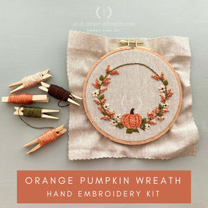 Premium Hand Embroidery Kit - Orange Pumpkin Wreath - And Other Adventures Embroidery Co