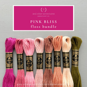 This listing is for the Pink Bliss Embroidery Floss Bundle that contains 8 selected DMC colors. You will receive a full skein of each color.