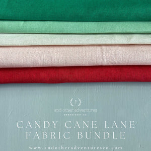 This Candy Cane Lane Embroidery Fabric sample pack feature 5 festive linen blends.