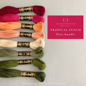 This listing is for the Tropical Punch Embroidery Floss Bundle that contains 8 selected DMC colors. You will receive a full skein of each color.