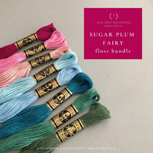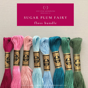This listing is for the Sugar Plum Fairy Embroidery Floss Bundle that contains 8 selected DMC colors. You will receive a full skein of each color.