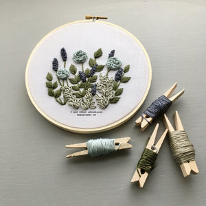 This listing is for the HAWTHORNE hand embroidery kit in the Winter Frost Color Palette that includes the following: