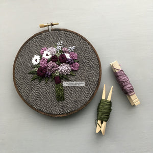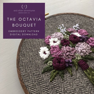 The Octavia Bouquet is a hand embroidery pattern from The Bloom Collection.  I started this collection for all of you who want to create a beautiful bouquet to honor your best friend, mom, or sister - maybe even to recreate your own beautiful wedding bouquet.  Feel free to use the colors shown here or change it up to embroider the bouquet of your dreams.