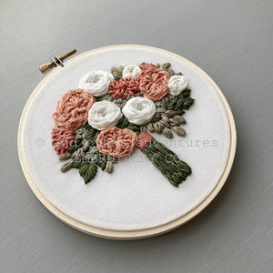 The Evangeline Bouquet is inspired by warm earthy tones and boho floral vibes. Available as a FULL KIT, perfect for the embroiderer that wants to learn how to create a lot of texture.