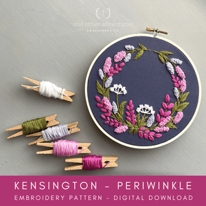 The first hand embroidery pattern of 2021. I can't wait to teach you how to make this beautiful Kensington - Periwinkle floral embroidery hoop.