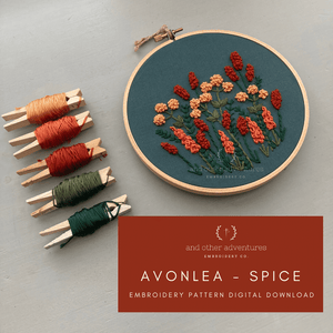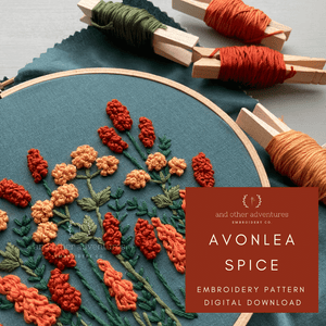 This floral hand embroidery pattern is inspired the meadows of Avonlea that Anne Shirley fell in love with. Add in this Spice color palette and you have all the makings of a perfect cozy fall weekend craft project.
