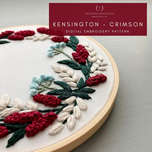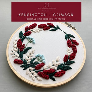 I can't wait to teach you how to embroider this beautiful crimson floral holiday wreath.