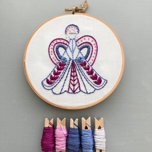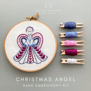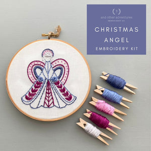 This beginner-friendly embroidery kit has everything you need to create a beautiful Christmas angel in periwinkle.