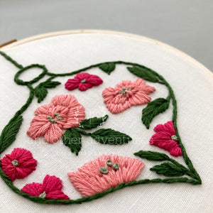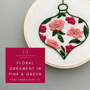 Bring some festive fun to your holidays with this gorgeous hand embroidery kit featuring a floral ornament in pink and green. This is a great beginner friendly design to get you in the Christmas spirit. In this kit, I teach many of the foundational stitches that I use across my work.