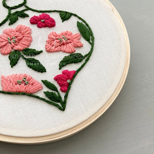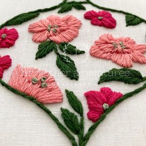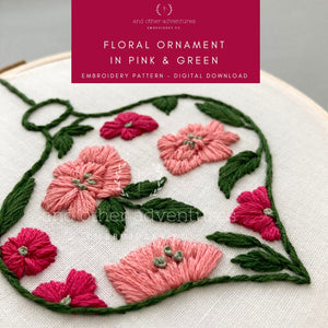 Bring some festive fun to your holidays with this gorgeous hand embroidery digital PDF pattern featuring a floral ornament in pink and green. This is a great beginner friendly design to get you in the Christmas spirit. You can stitch the colors exactly as is or change them up a bit to create your own unique holiday masterpiece!