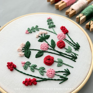 Enjoy the relaxing benefits of hand embroidery this weekend, with our Hand Embroidery Kit - Jardín in Red. Perfect for beginners, this kit includes everything you need to create a beautiful red, pink, and green floral design.