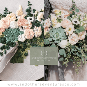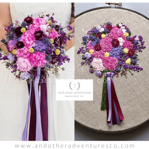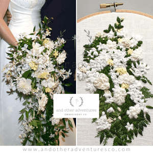 NOTE: Current processing time is 12 weeks from receiving your order and bouquet photos. If you need your embroidered bouquet by a specific date, please reach out prior to purchase to ensure that we can coordinate timelines.