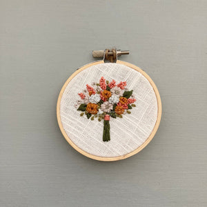 The sweetest beautiful blooms hand stitched on to off-white linen make for the best kind of gift. Full of color, these florals will never fade and are the perfect pick-me-up.