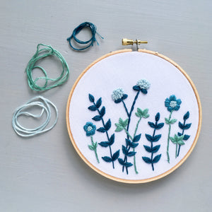 There are very few things that bring me as much joy as spending time by the sea. I joke with my family that I need to be dipped into the salty sea at least once a year to live my best life. Designed and hand stitched with my favorite shades of blue, the Ocean Blues embroidery is tribute to my happy place.