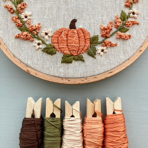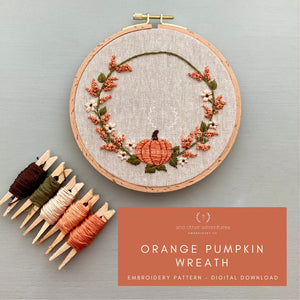Nothing says fall quite like pumpkins. I love this simple fall pumpkin wreath embroidery pattern. You can stitch it up exactly as is or customize it a bit with your text in the middle. It is sweet and gives off all those autumn vibes.